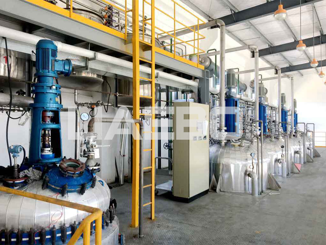 樹脂生產(chǎn)線,主要解決配料、滴加、升溫、降溫、攪拌等過有問題;該生產(chǎn)線5臺(tái)5000L高速攪拌反應(yīng)釜;儲(chǔ)罐區(qū)(立式儲(chǔ)罐)自動(dòng)配料,蒸汽加熱、冷水降溫、自動(dòng)溫控系統(tǒng),真空上料、真空脫水、滴加釜控制流速、緩慢滴加,冷凝系統(tǒng)、油水分離、液料回收,廢水凈廢水處理后可再循環(huán)使用,流量計(jì)控制加料速度。
