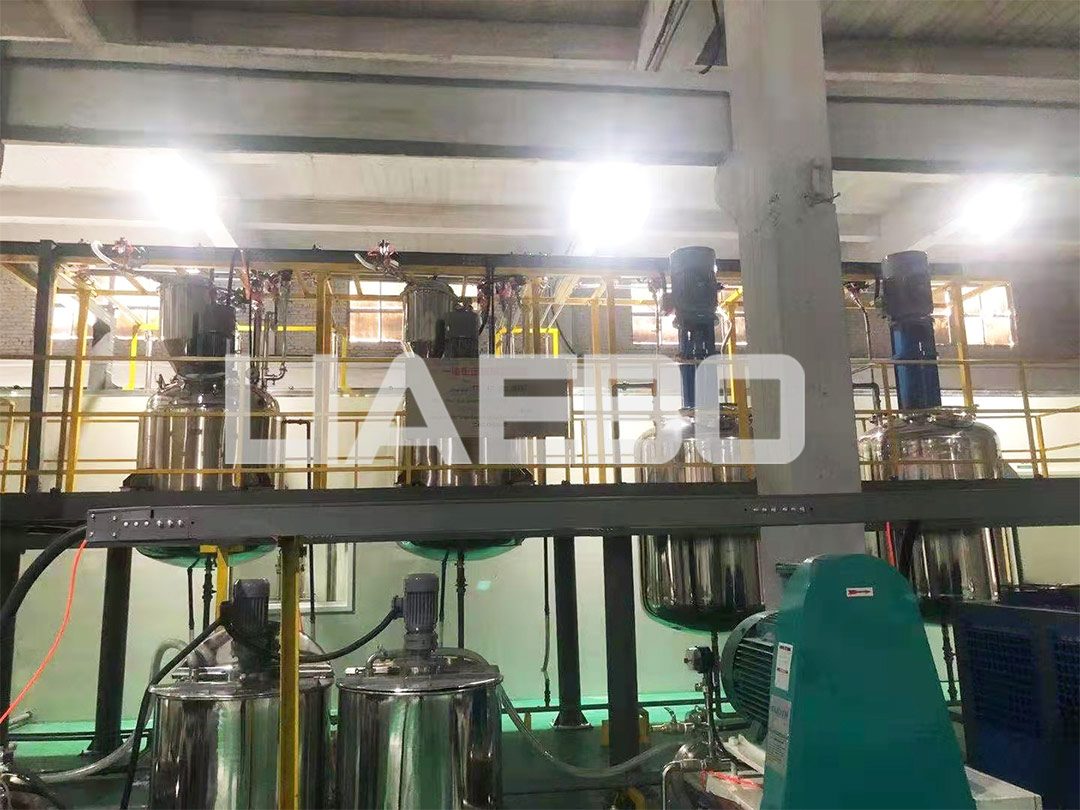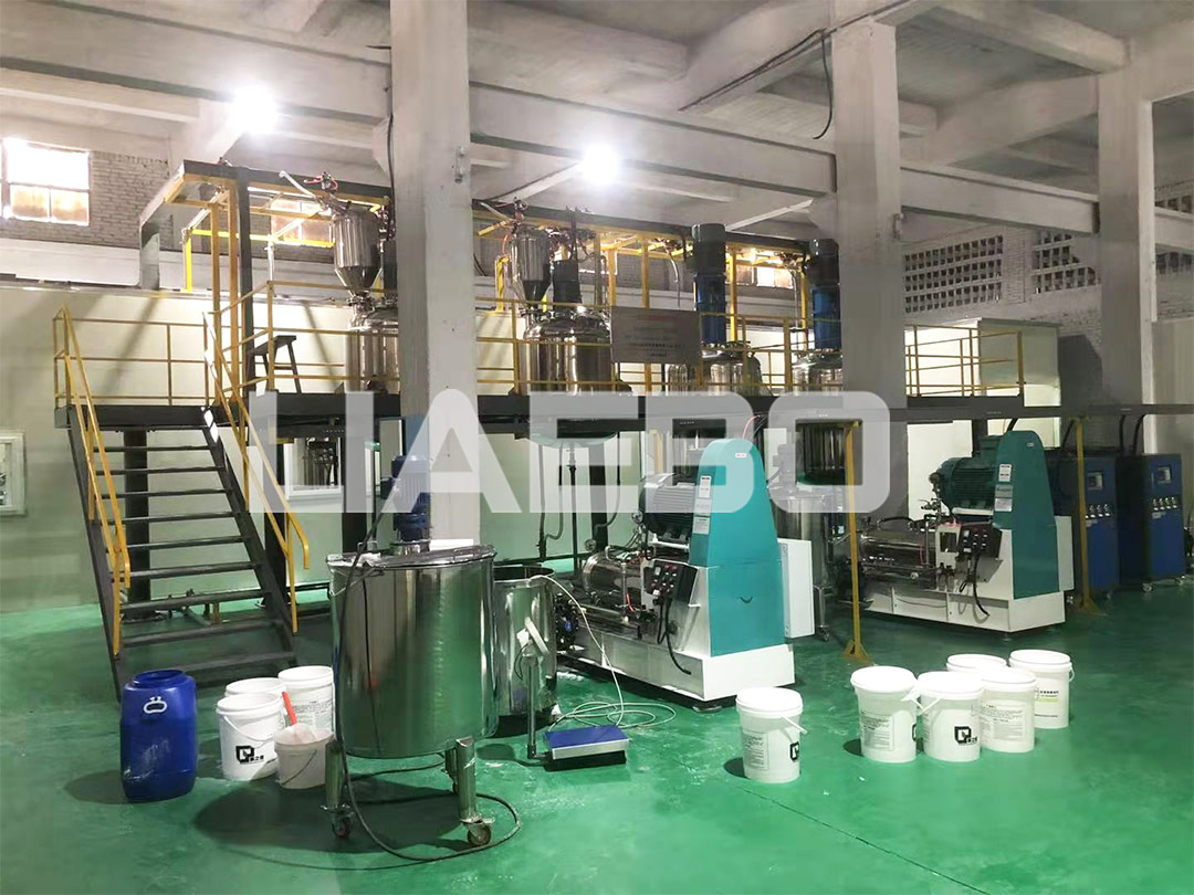 水性乙烯基高防腐涂料生產線,年產2萬噸成品,專業電廠防腐涂料,工藝要求高,生產過程對溫度、分散力度都有特別的要求,設備設計附加分散盤釜內升降,滿足不同層面固液混合需求,解決分散不均衡的問題。自動配料、粉體隔層投放、釜蓋密封設計,解決了配料、品質、環保、安全等一系列重要問題。