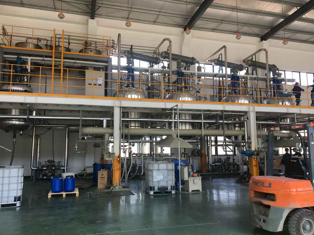樹脂生產線,主要解決配料、滴加、升溫、降溫、攪拌等過有問題;該生產線5臺5000L高速攪拌反應釜;儲罐區(立式儲罐)自動配料,蒸汽加熱、冷水降溫、自動溫控系統,真空上料、真空脫水、滴加釜控制流速、緩慢滴加,冷凝系統、油水分離、液料回收,廢水凈廢水處理后可再循環使用,流量計控制加料速度。