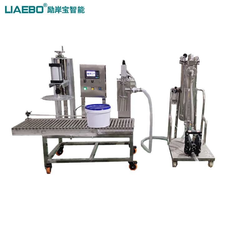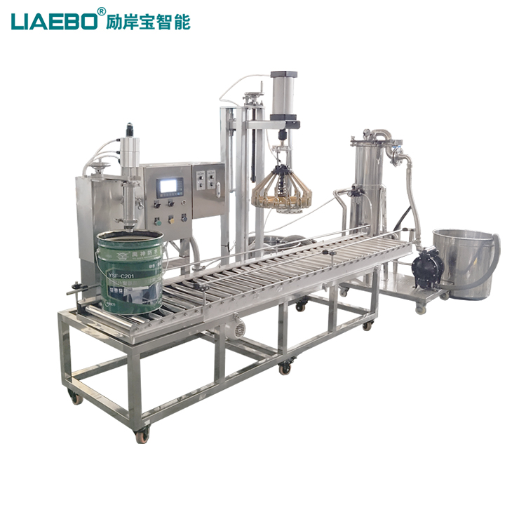 液體灌裝機是以重量方式精確地將大量的散裝液體物料分裝到各種容器、鐵桶或塑料桶中,用于 4L~30L 桶自動定量灌裝。廣泛應用于化工、農藥等與液體狀物料相關的行業,適用在涂料、油漆、油墨、膠粘劑、固化劑、樹脂、染料、清洗劑、機油、甘油、潤滑油、食用油、香精、溶劑、助劑、食品添加劑、農藥及其他危險性化學產品等產品中。單頭半自動灌裝機自動化控制儀表接收稱重傳感器給出的重量信號,單頭/大流量/小流量控制進料閥,實現自動灌裝的目的:并配有半自動輸送輥道及壓蓋/夾蓋/裝置,完成物料灌裝與密封過程。主要用于馬口鐵桶、塑料桶的定量自動灌裝,也適用于食品、制藥、化工等多種行業液體類物料的自動定灌裝。