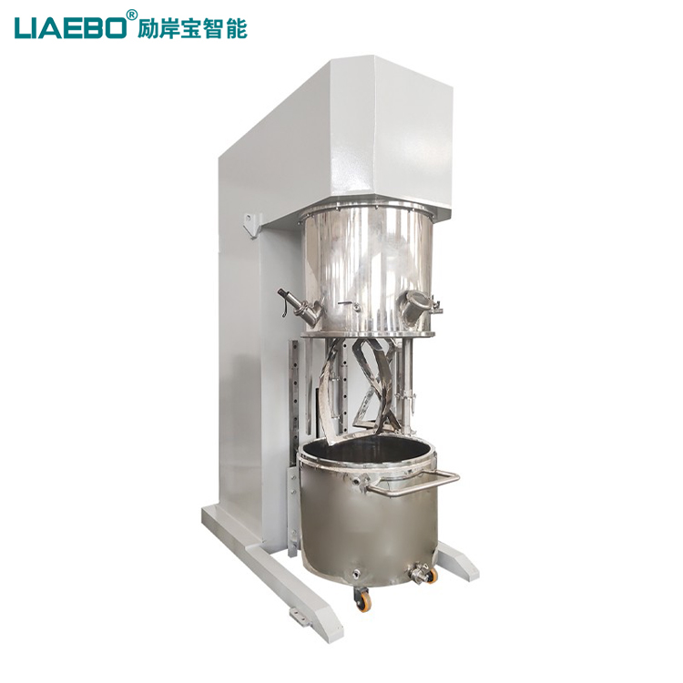 LXJ-20L行星混合攪拌機分為行星攪拌系統、行星罩、刮壁器、反應釜、液壓升降系統、液壓出料系統、真空系統以及機架等構成。是在消化吸收國內外先進技術的基礎上加以創新改進開發出的一種新型、高效混合裝置。