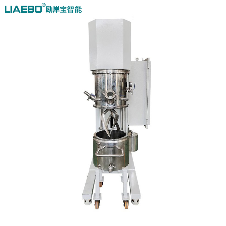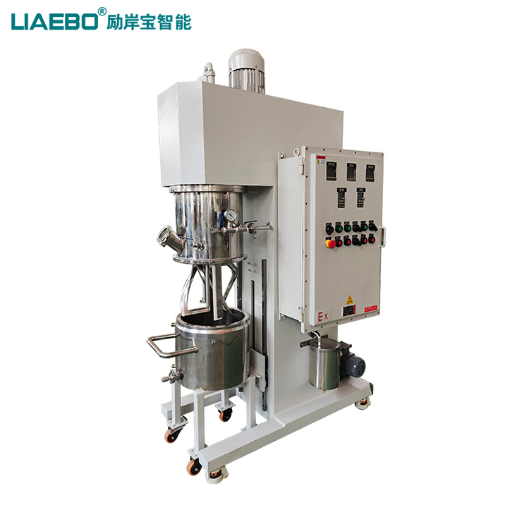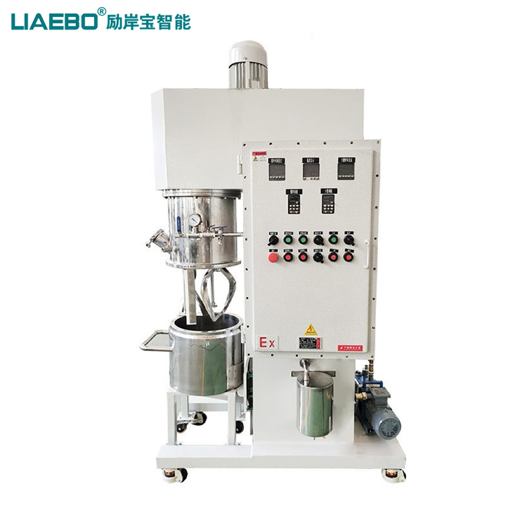 LXJ-20L行星混合攪拌機分為行星攪拌系統、行星罩、刮壁器、反應釜、液壓升降系統、液壓出料系統、真空系統以及機架等構成。是在消化吸收國內外先進技術的基礎上加以創新改進開發出的一種新型、高效混合裝置。