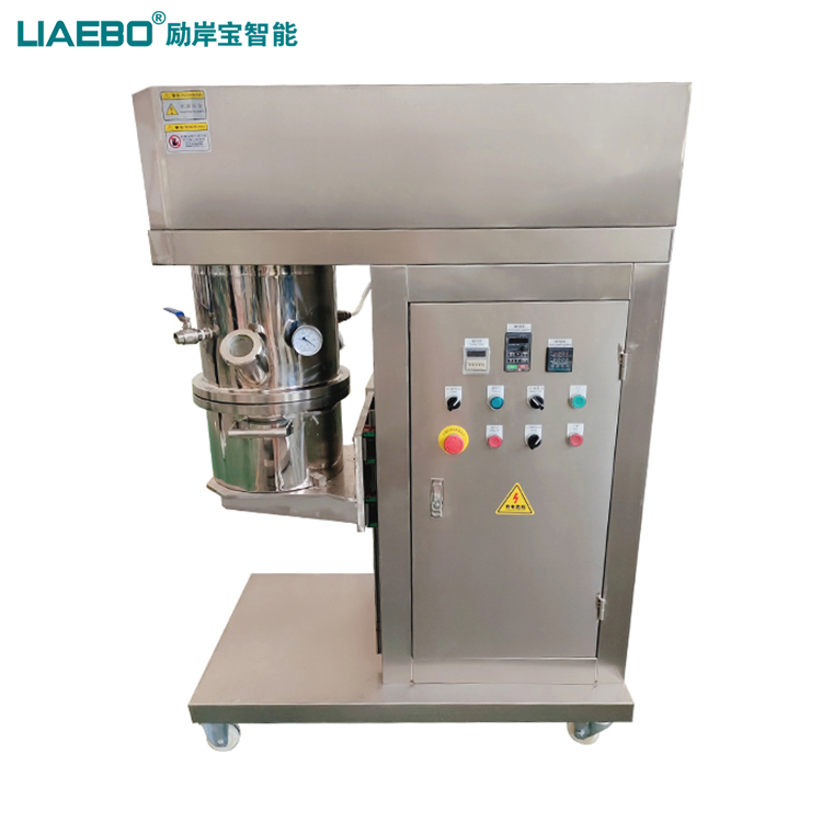雙行星真空攪拌機是一種高性能、高效率、易清洗維護的新型攪拌設備。主要由減速電機、行星架、攪拌器、分散器、刮壁器、料桶、升降系統、液壓擠出系統以及機架等構成,設備的雙組攪拌器運行時自轉同時繞著軸心進行公轉,攪拌器形式根據物料粘度和工藝特性選配,常見的包括漿葉式、麻花式、爪式、框式等,具備良好的混合、反應、捏合、溶解的作用;高速分散器由多層具備極高線速度的鋸齒狀分散盤組成,它同樣在高速自轉的同時繞著軸心進行公轉,能夠將粉料(助劑)快速的分散到漿料里,具備很強的分散作用。設備配有一組獨立刮刀,對桶壁進行不斷的刮拭,同時攪拌漿葉可以增加刮片,對料桶底部進行刮拭,避免攪拌死角,確保產品的穩定性;雙行星真空攪拌機傳動采用行星齒輪傳動,有較大的輸出扭矩,適用干高溫、高固,高粘度等高難度工況;該設備采用密閉式設計,可以配合真空系統,實現真空攪拌,攪拌桶也可設計帶夾套加熱,配合模溫機,實現恒溫攪拌功能,是市場上針對高粘度物料的分散、攪拌設備。