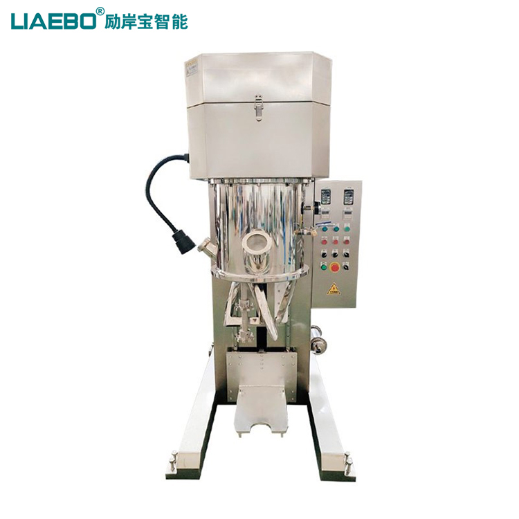 雙行星真空攪拌機(jī)是一種高性能、高效率、易清洗維護(hù)的新型攪拌設(shè)備。主要由減速電機(jī)、行星架、攪拌器、分散器、刮壁器、料桶、升降系統(tǒng)、液壓擠出系統(tǒng)以及機(jī)架等構(gòu)成,設(shè)備的雙組攪拌器運(yùn)行時自轉(zhuǎn)同時繞著軸心進(jìn)行公轉(zhuǎn),攪拌器形式根據(jù)物料粘度和工藝特性選配,常見的包括漿葉式、麻花式、爪式、框式等,具備良好的混合、反應(yīng)、捏合、溶解的作用;高速分散器由多層具備極高線速度的鋸齒狀分散盤組成,它同樣在高速自轉(zhuǎn)的同時繞著軸心進(jìn)行公轉(zhuǎn),能夠?qū)⒎哿?助劑)快速的分散到漿料里,具備很強(qiáng)的分散作用。設(shè)備配有一組獨(dú)立刮刀,對桶壁進(jìn)行不斷的刮拭,同時攪拌漿葉可以增加刮片,對料桶底部進(jìn)行刮拭,避免攪拌死角,確保產(chǎn)品的穩(wěn)定性;雙行星真空攪拌機(jī)傳動采用行星齒輪傳動,有較大的輸出扭矩,適用干高溫、高固,高粘度等高難度工況;該設(shè)備采用密閉式設(shè)計,可以配合真空系統(tǒng),實現(xiàn)真空攪拌,攪拌桶也可設(shè)計帶夾套加熱,配合模溫機(jī),實現(xiàn)恒溫攪拌功能,是市場上針對高粘度物料的分散、攪拌設(shè)備。