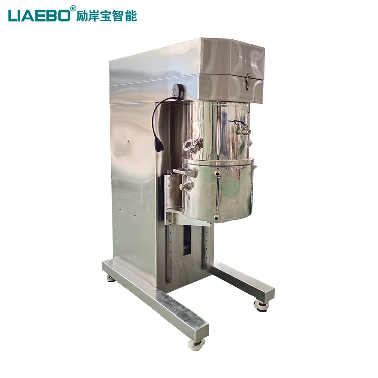 LXJ-20L行星混合攪拌機分為行星攪拌系統、行星罩、刮壁器、反應釜、液壓升降系統、液壓出料系統、真空系統以及機架等構成。是在消化吸收國內外先進技術的基礎上加以創新改進開發出的一種新型、高效混合裝置。