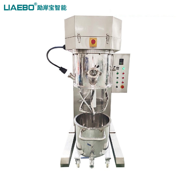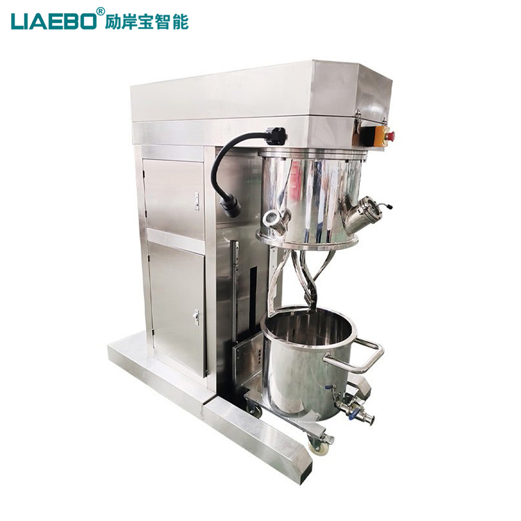 雙行星真空攪拌機(jī)是一種高性能、高效率、易清洗維護(hù)的新型攪拌設(shè)備。主要由減速電機(jī)、行星架、攪拌器、分散器、刮壁器、料桶、升降系統(tǒng)、液壓擠出系統(tǒng)以及機(jī)架等構(gòu)成,設(shè)備的雙組攪拌器運(yùn)行時(shí)自轉(zhuǎn)同時(shí)繞著軸心進(jìn)行公轉(zhuǎn),攪拌器形式根據(jù)物料粘度和工藝特性選配,常見的包括漿葉式、麻花式、爪式、框式等,具備良好的混合、反應(yīng)、捏合、溶解的作用;高速分散器由多層具備極高線速度的鋸齒狀分散盤組成,它同樣在高速自轉(zhuǎn)的同時(shí)繞著軸心進(jìn)行公轉(zhuǎn),能夠?qū)⒎哿?助劑)快速的分散到漿料里,具備很強(qiáng)的分散作用。設(shè)備配有一組獨(dú)立刮刀,對(duì)桶壁進(jìn)行不斷的刮拭,同時(shí)攪拌漿葉可以增加刮片,對(duì)料桶底部進(jìn)行刮拭,避免攪拌死角,確保產(chǎn)品的穩(wěn)定性;雙行星真空攪拌機(jī)傳動(dòng)采用行星齒輪傳動(dòng),有較大的輸出扭矩,適用干高溫、高固,高粘度等高難度工況;該設(shè)備采用密閉式設(shè)計(jì),可以配合真空系統(tǒng),實(shí)現(xiàn)真空攪拌,攪拌桶也可設(shè)計(jì)帶夾套加熱,配合模溫機(jī),實(shí)現(xiàn)恒溫?cái)嚢韫δ埽鞘袌錾厢槍?duì)高粘度物料的分散、攪拌設(shè)備。