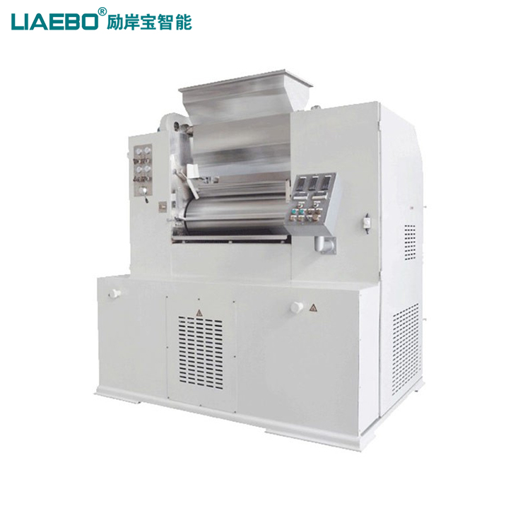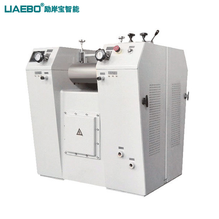 平液壓三輥研磨機的輥筒采用獨特的合金材料澆鑄,具有極高的硬度。該系列采用比例閥調節輥筒間的壓力與間距,提高了整機的穩定性,增加了設備的使用壽命。該設備可以采用西門子PLC自動控制輥筒壓力、轉速與溫度(選項)。工作時間快、慢輥調節到適當位置,啟動機器,然后將需要研磨的漿料加入中輥與慢輥之間銅刀處,漿料經過中、慢輥表面擠軋后,由中輥帶給快輥,再由緊貼表面的出料刮刀予以刮下,通過裝有欄板的刀板,流入盛料筒,由此構成整個研磨的過程。